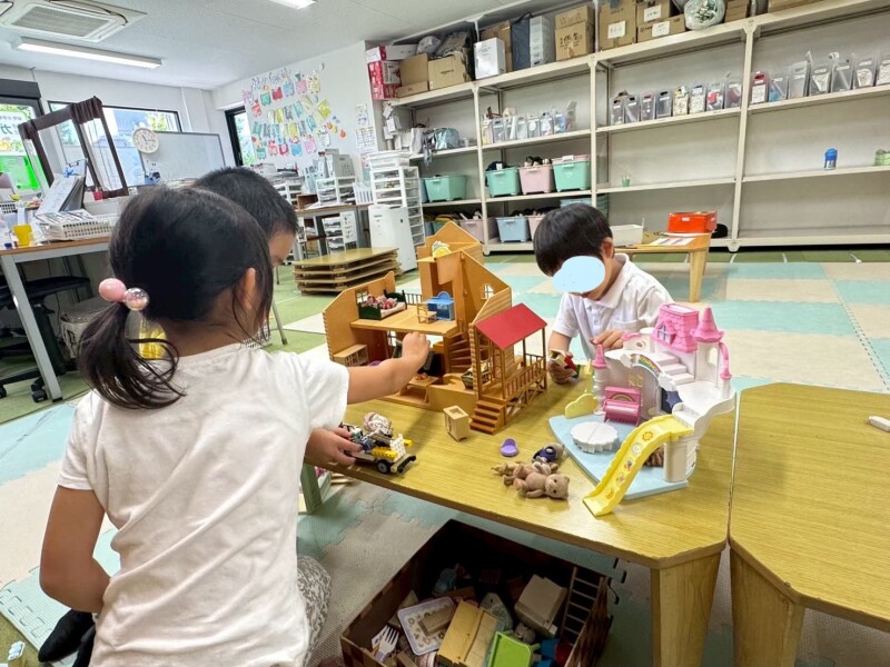 お部屋遊びでは、お人形遊びをしたり、ブロックをしたりと好きなおもちゃで友達と遊ぶことを楽しみながら過ごす姿が見られました👭!