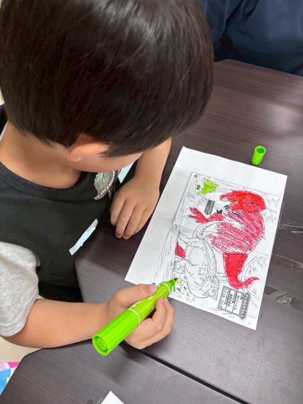 プラバンも子どもたちに大人気なので、プラバンするよーっと声を掛けると、嬉しそうに集まって「何書くー?」「ポケモン図鑑見ながら描いてみる!」などと楽しそうに取り組む姿がみられました!