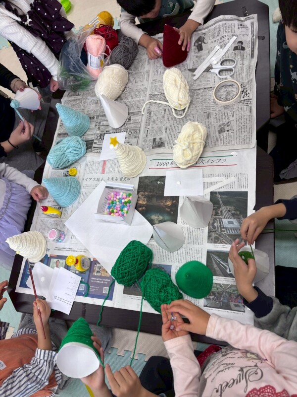 12月の製作あそびでは、クリスマスツリーの製作をしました!