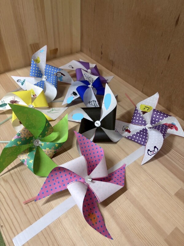 完成した風車を早速持って歩いたり、息を吹きかけて回したりと楽しむ姿が見られました🤭
