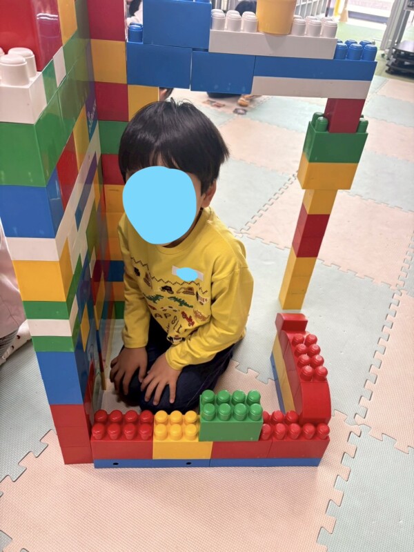 お部屋遊びでは、ブロックを使って家を作ったり、塗り絵をしたりと好きな遊びを選んで遊びました!